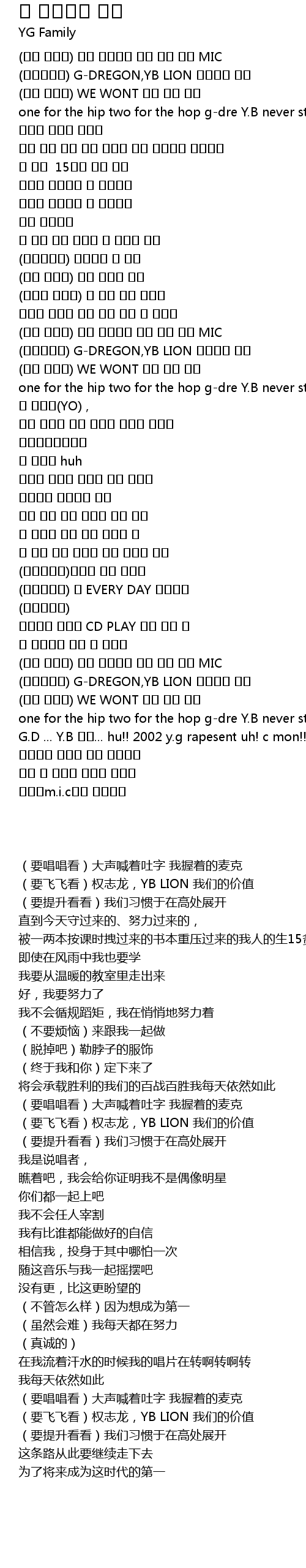 | [02:23.76] | G.D ... Y.B 태권... hu!! 2002 y.g rapesent uh! c mon!! |