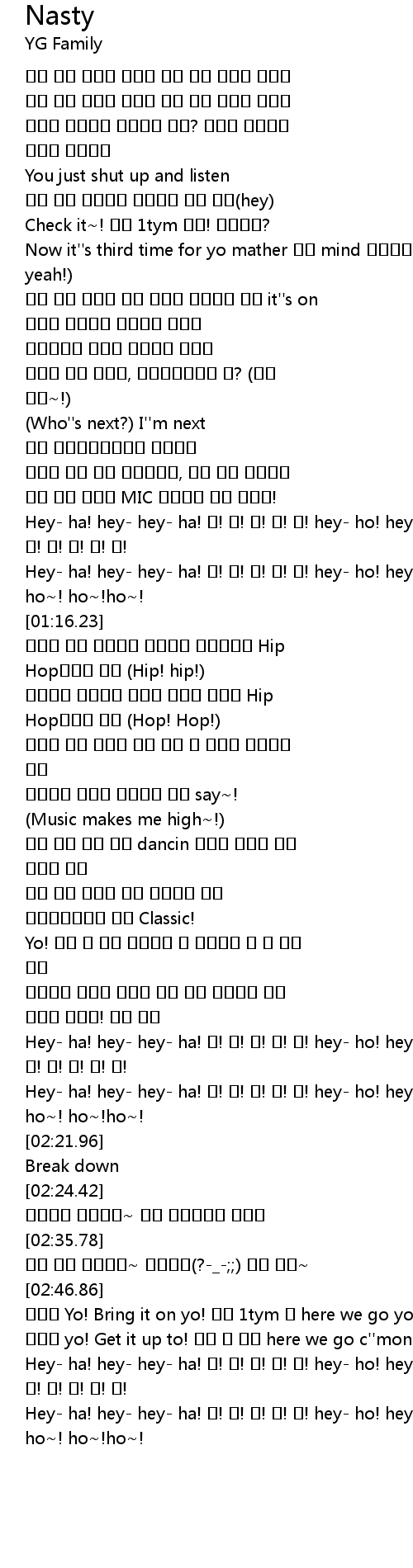 | [03:00.47] | Yo! Bring it on yo! 1tym here we go yo! |