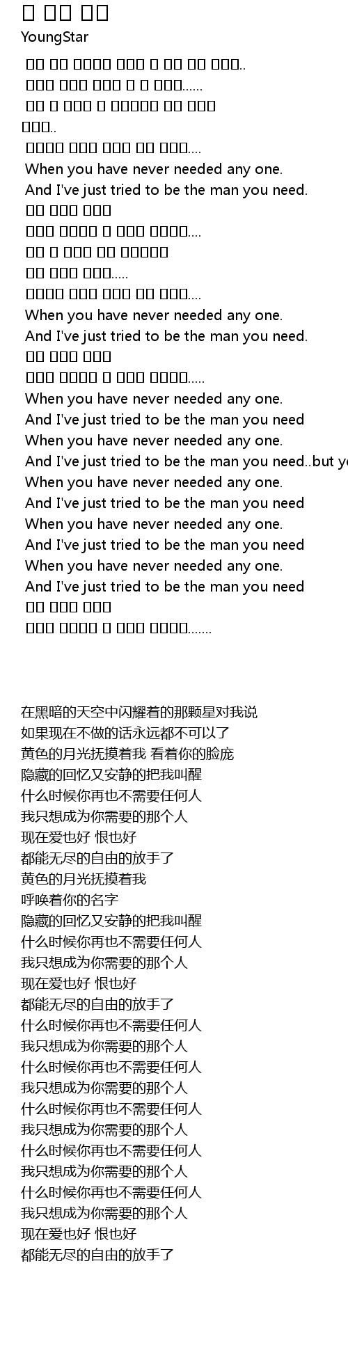 | [00:48.184] | When you have never needed any one. |
