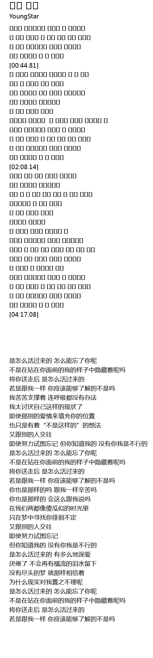 | [03:01.24] | 어떻게 살아왔는지 얼마나 사랑했는지 |