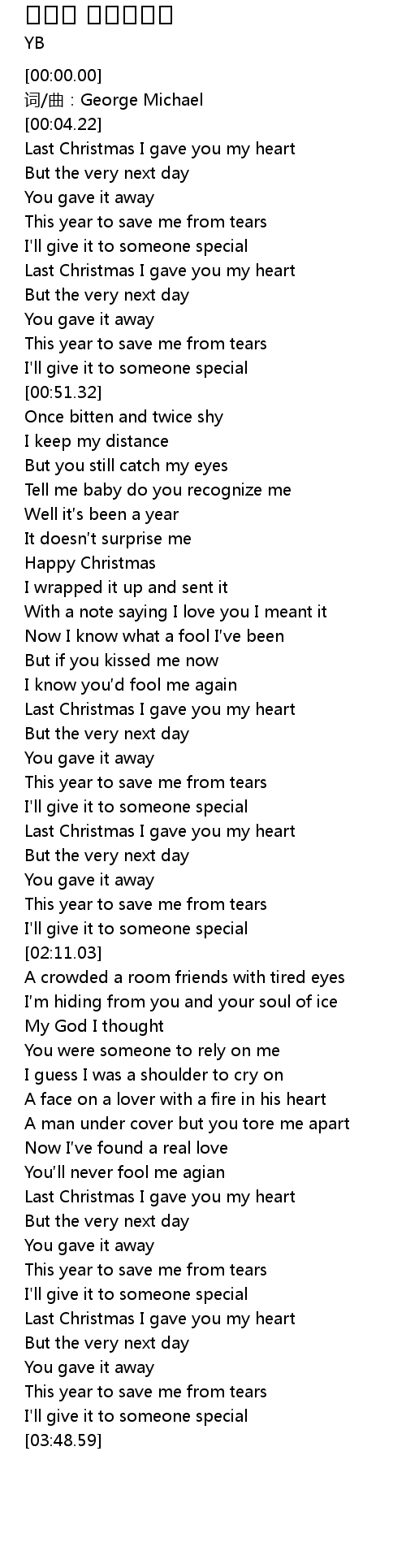| [03:34.47] | Last Christmas I gave you my heart |