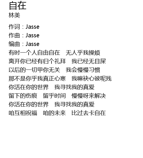 | 作词:Jasse | |