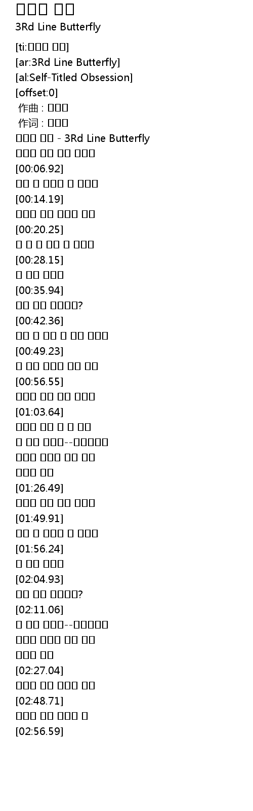 | [00:00.36] | 걷기만 하네 - 3Rd Line Butterfly |