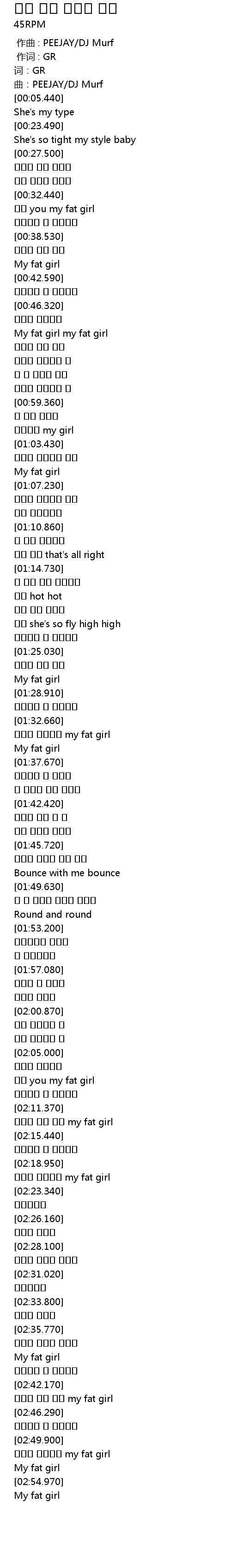 | [02:43.600] | 내게는 하나 뿐인 my fat girl |