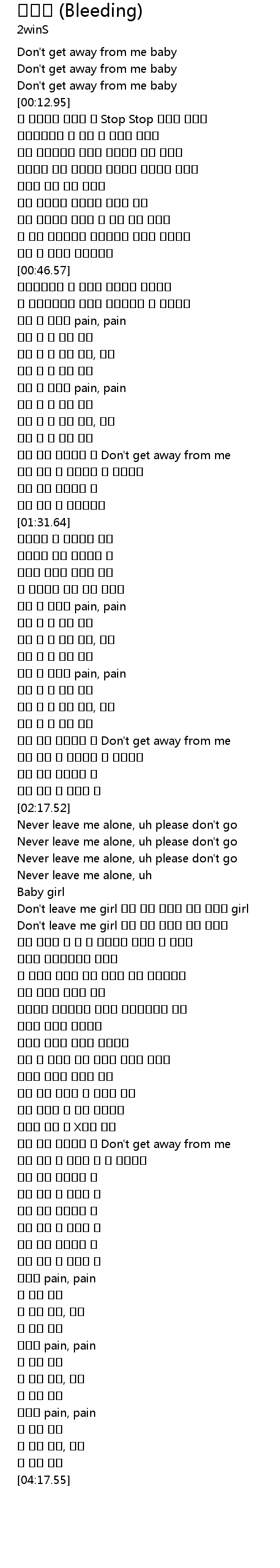 | [01:55.23] | 피가 나 오늘도 pain, pain |