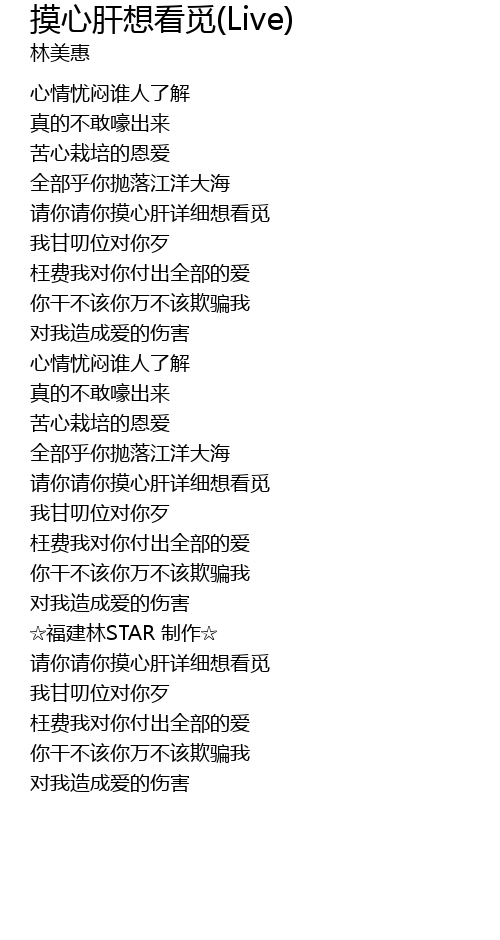 | [02:50.833] | 请你请你摸心肝详细想看觅 |