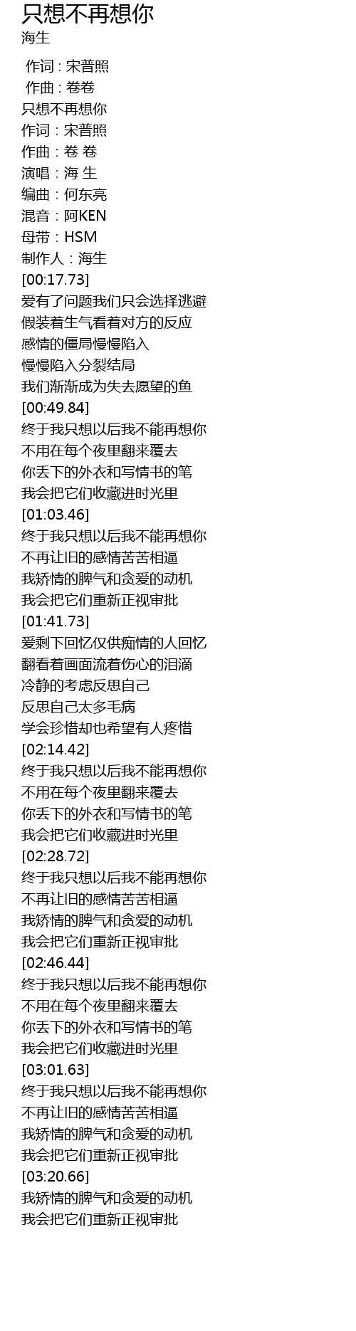 | [00:02.09] | 只想不再想你 |