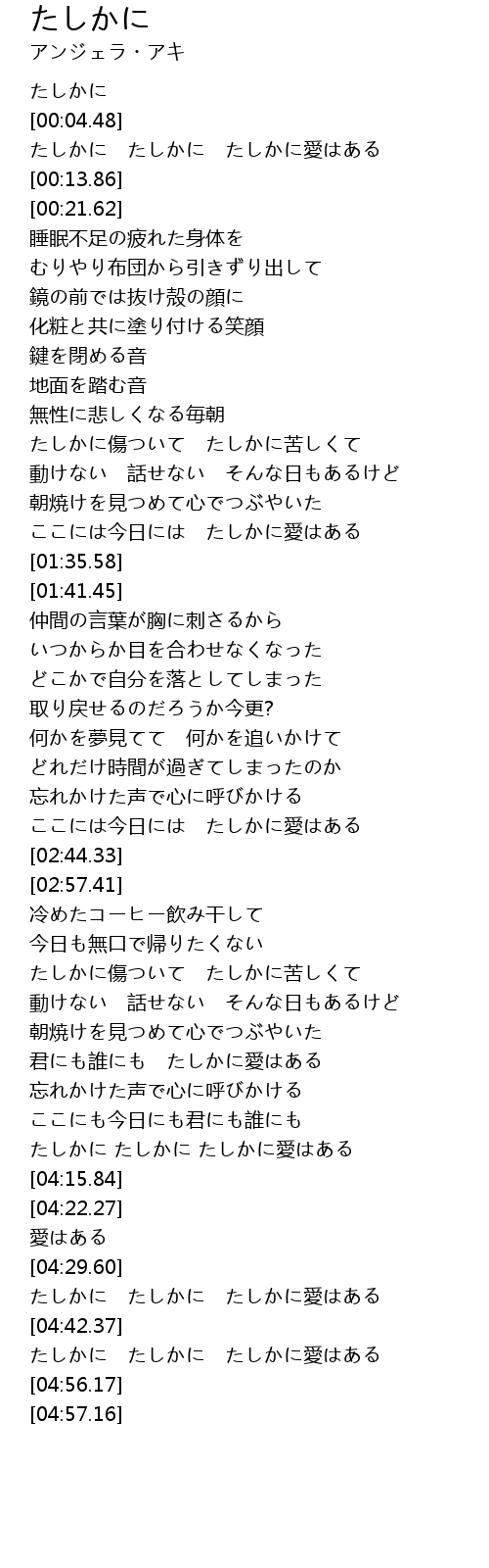 | [04:35.45] | たしかに たしかに たしかに愛はある |