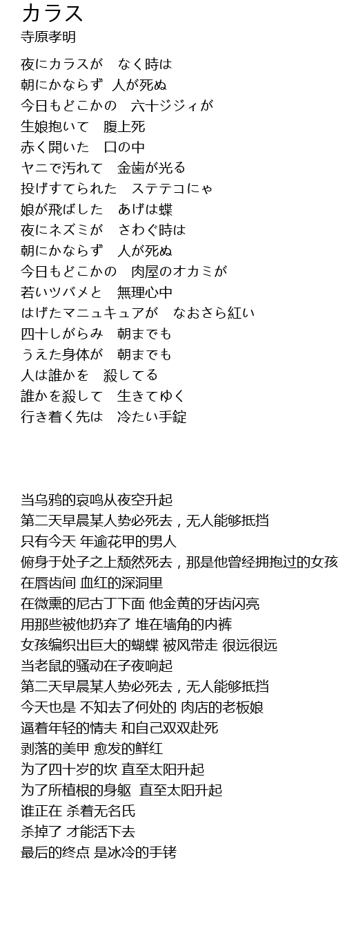 | [02:33.12] | 朝にかならず 人が死ぬ |