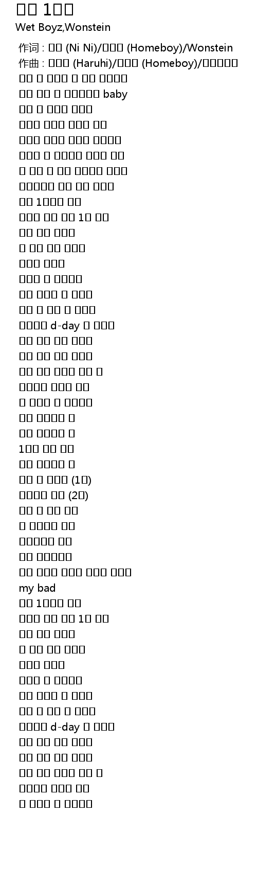 | [00:00.000] | 作词 : 니니 (Ni Ni)/홈보이 (Homeboy)/Wonstein |