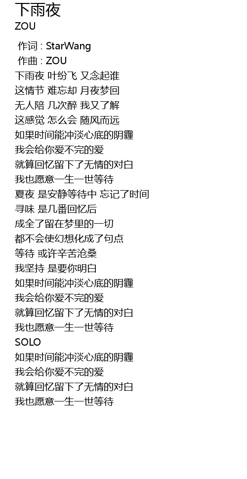 | [00:00.000] | 作词 : StarWang |