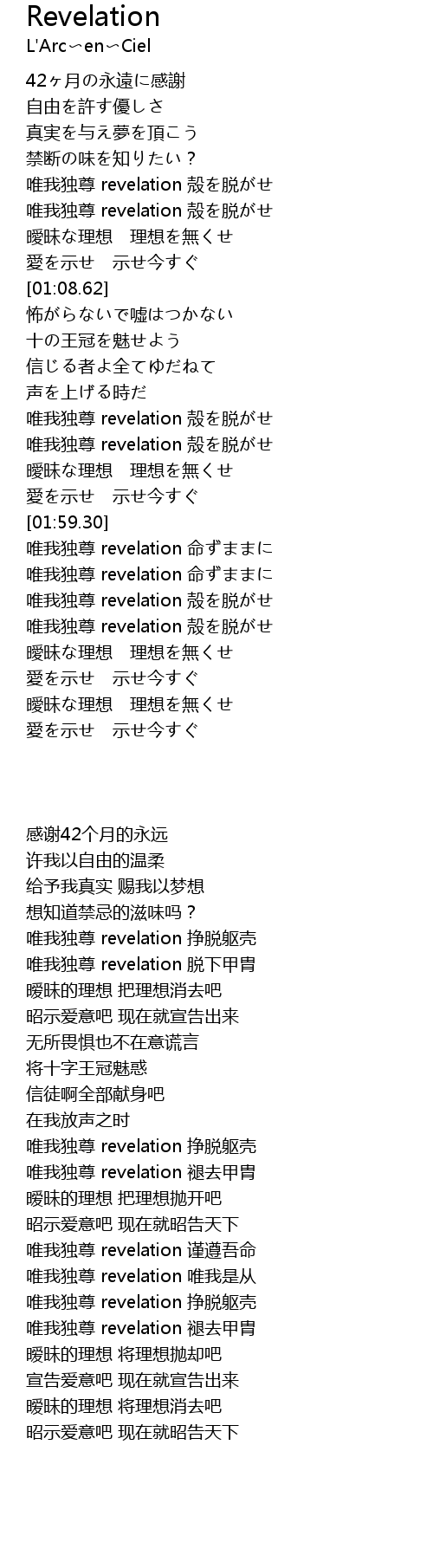 | [00:42.12] | 唯我独尊 revelation 殻を脱がせ |