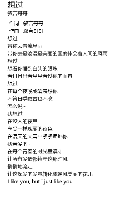 | [00:00.000] | 作词 : 叙言哥哥 |