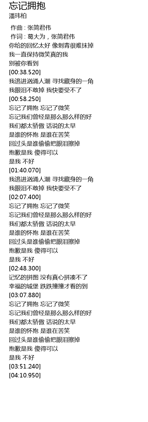 | [03:10.040] | 忘记了拥抱 忘记了微笑 |