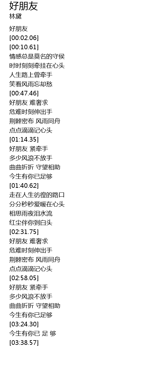 | [02:32.38] | 好朋友 难奢求 |