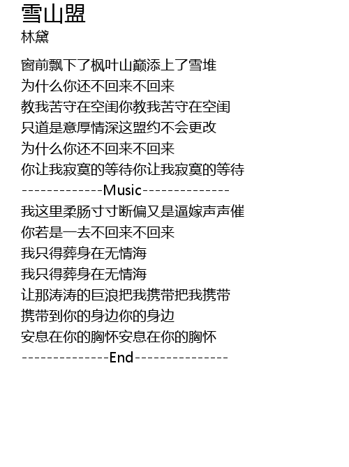 | [00:17.42] | 窗前飘下了枫叶山巅添上了雪堆 |