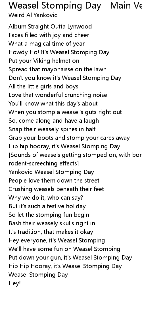 Hip Hip Hooray, it's Weasel Stomping Day |