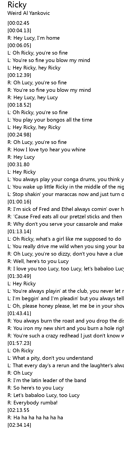 L: Stop shakin' your maraccas now and just turn out the light Ricky |