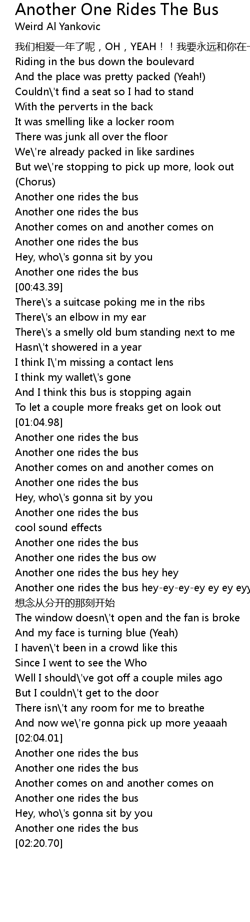 | [00:42.11] | Another one rides the bus |