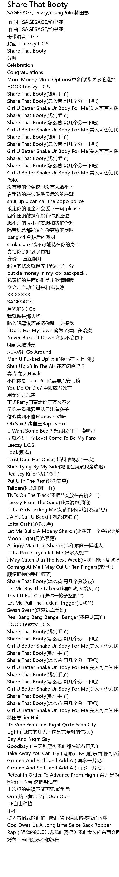 | [00:10.211] | Share That Booty(钱到手了) |