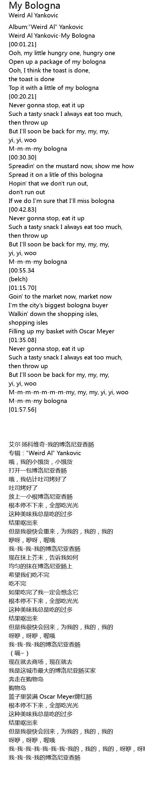 [00:01.78] Weird Al Yankovic-My Bologna