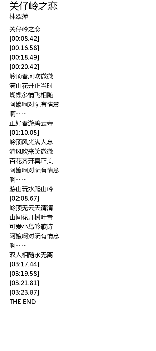 | [02:55.82] | 阿娘啊对阮有情意 |