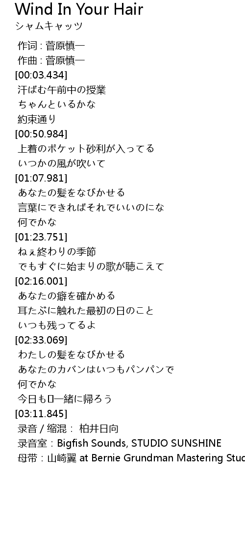 | [03:32.618] | 母带:山崎翼 at Bernie Grundman Mastering Studio |