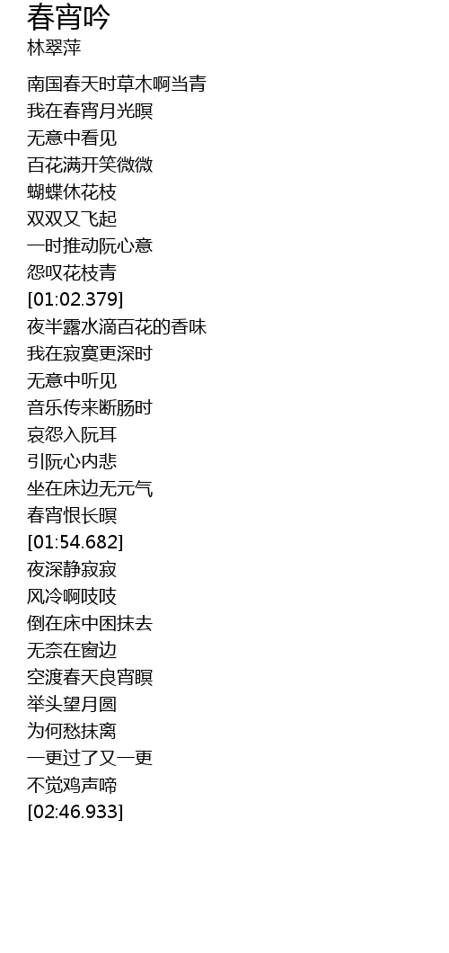 | [01:49.334] | chūn xiāo hèn zhǎng míng |