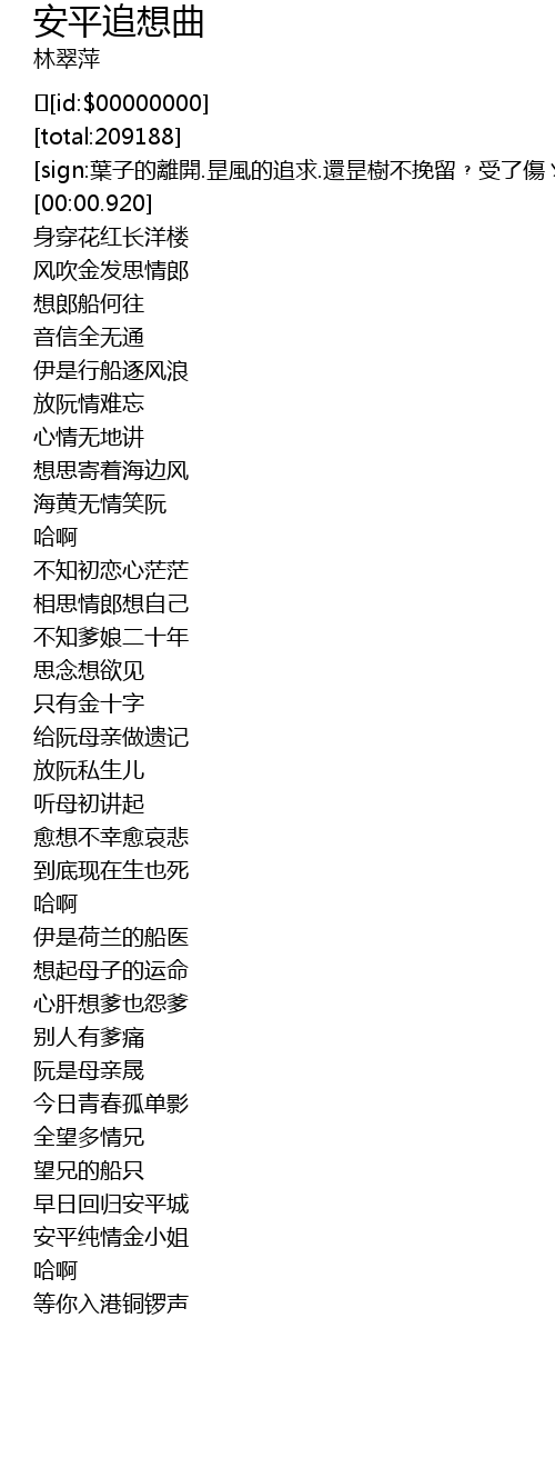 | [02:58.952] | ān píng chún qíng jīn xiǎo jiě |