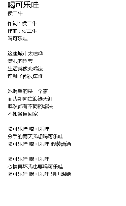 | 喝可乐哇 喝可乐哇 别再想她 |