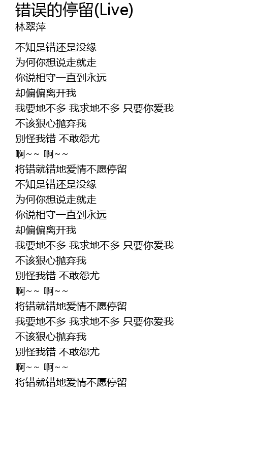 | [01:39.760] | bù zhī shì cuò hái shì méi yuán |