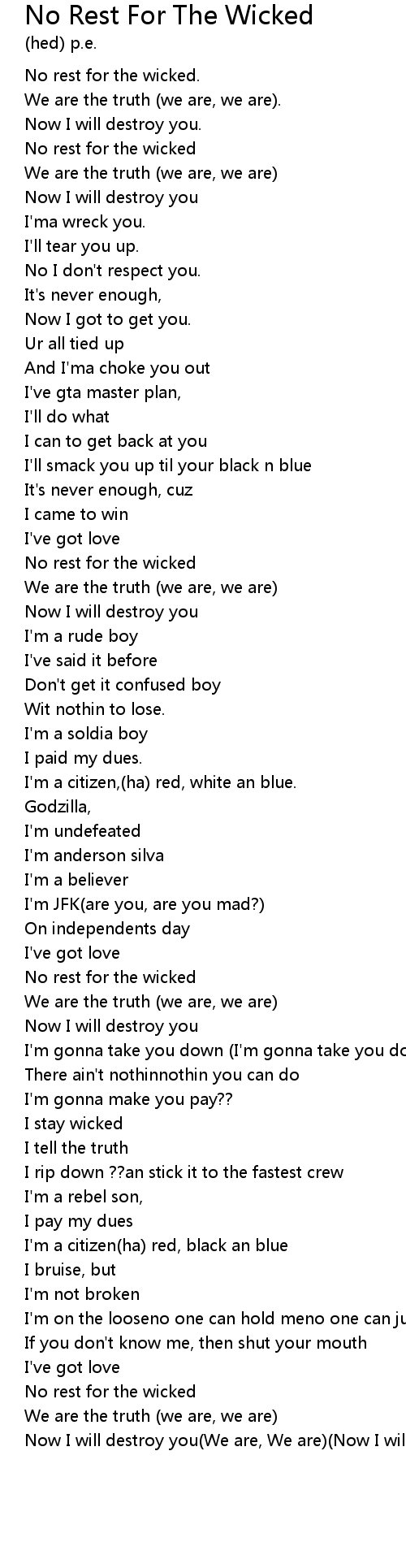 No rest for the wicked |