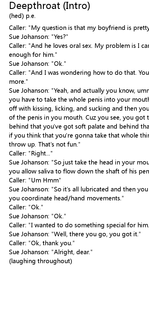 Caller: "And he loves oral sex. My problem is I can't seem to go down deep enough for him." |