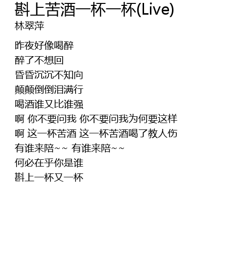 | a zhè yī bēi kǔ jiǔ zhè yī bēi kǔ jiǔ hē le jiào rén shāng | |