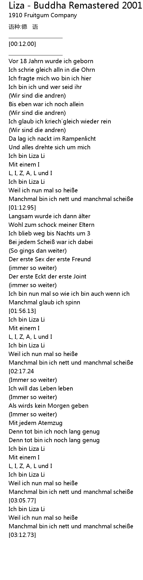 | [02:49.69] | Ich bin Liza Li |