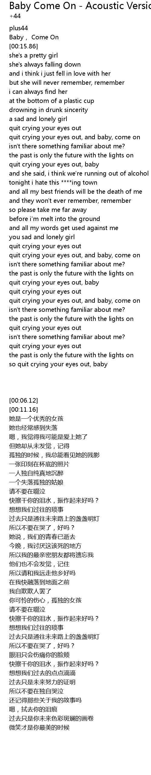 | [00:11.16] | Baby, Come On |