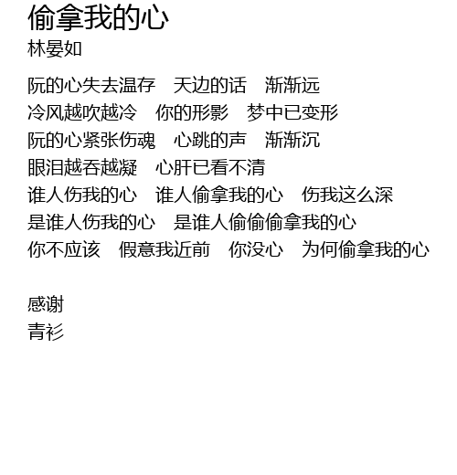 | 你不应该 假意我近前 你没心 为何偷拿我的心 | |