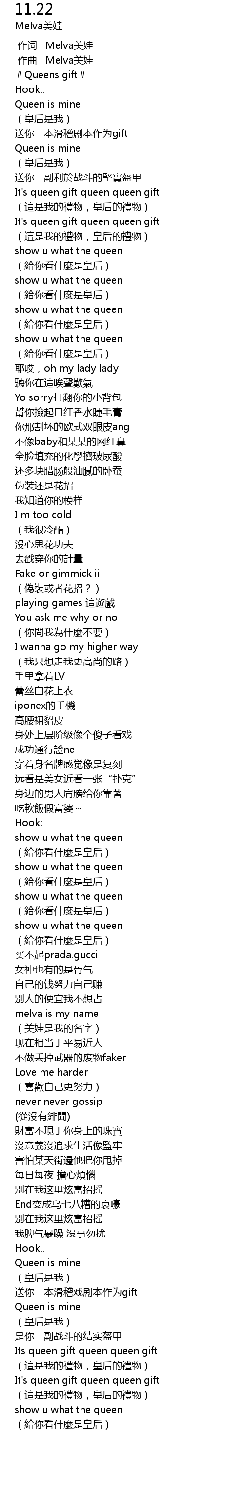 | [00:21.710] | (這是我的禮物,皇后的禮物) |