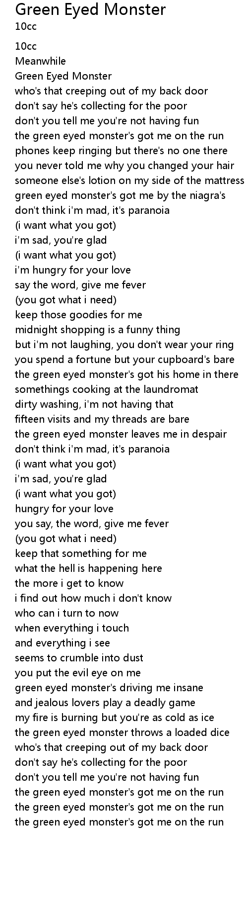 | the green eyed monster's got me on the run |