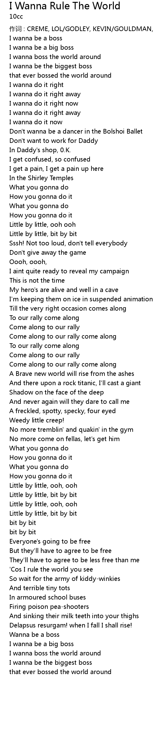 | ' Cos I rule the world you see | |