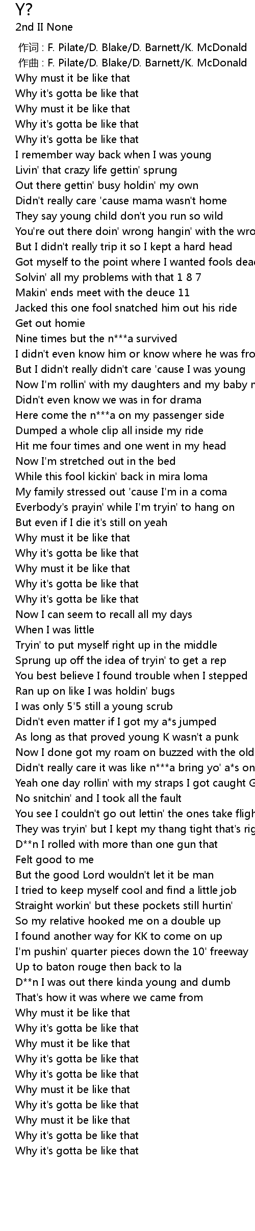| [01:45.92] | Why it's gotta be like that |