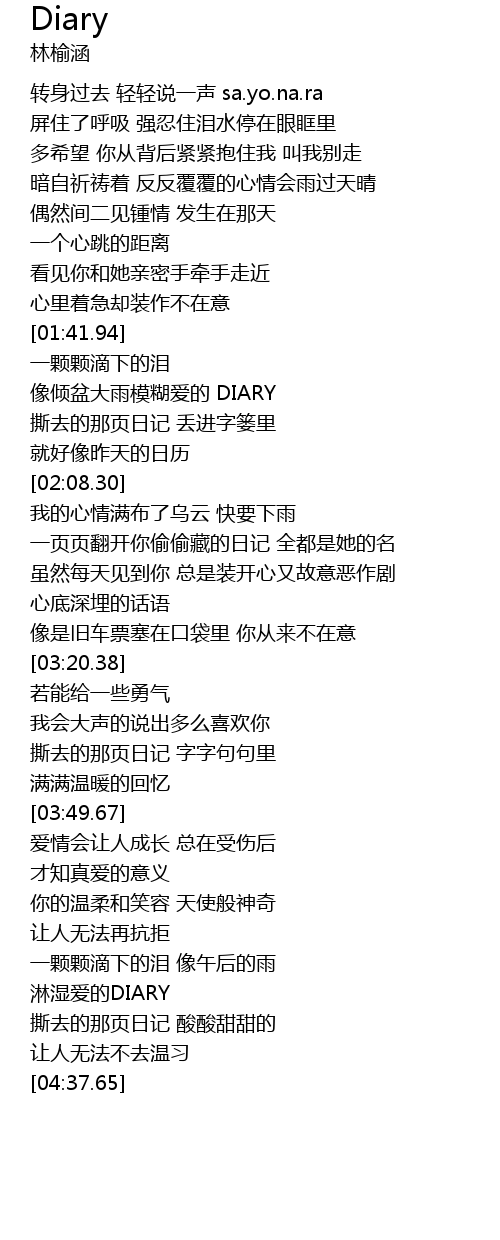 | [04:24.49] | 撕去的那页日记 酸酸甜甜的 |