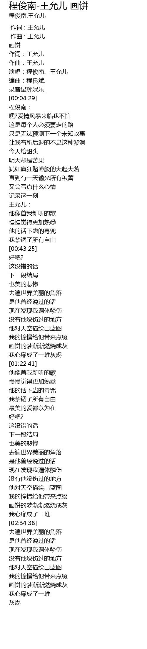 | [00:02.54] | 演唱:程俊南、王允儿 |