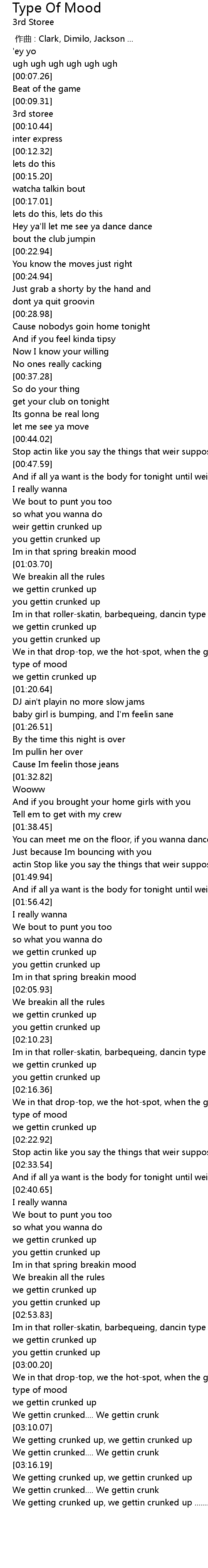| [03:00.71] | We in that drop-top, we the hot-spot, when the girls stop to watch us type of mood |