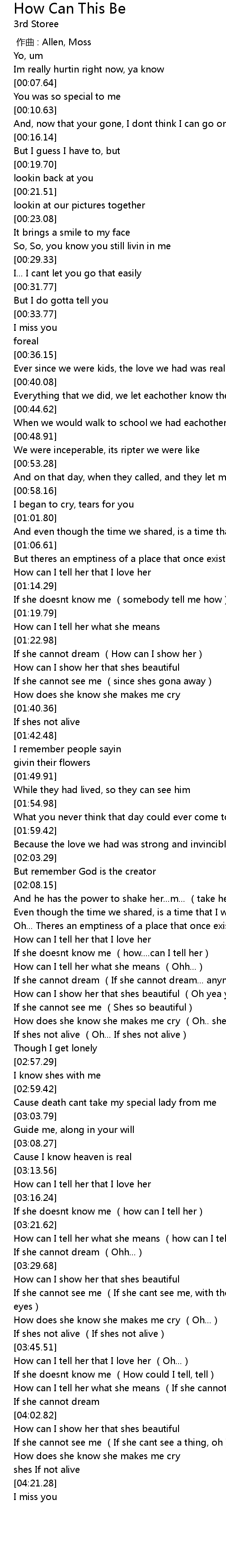 | [00:00.00] | 作曲 : Allen, Moss |