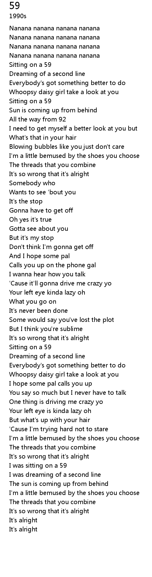 | [00:20.18] | Sitting on a 59 |