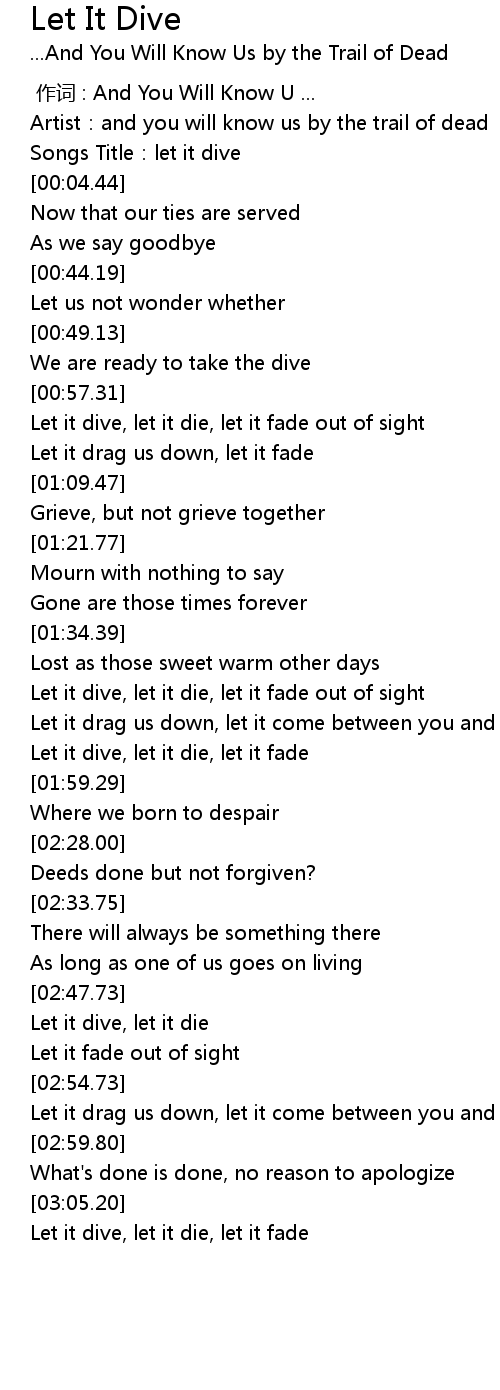 | [01:54.86] | Let it dive, let it die, let it fade |