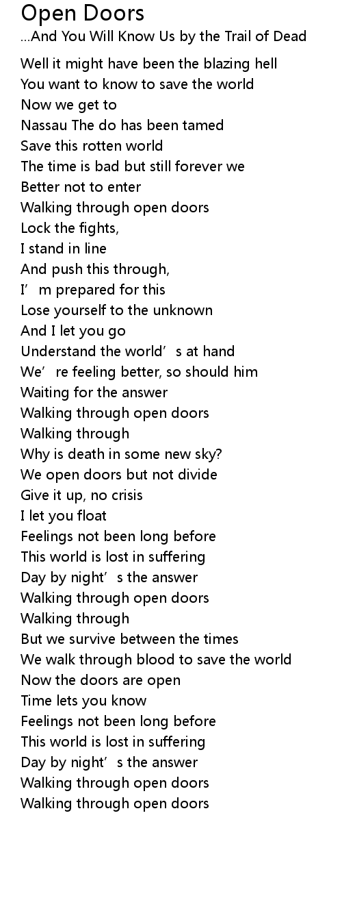 | Walking through open doors | |