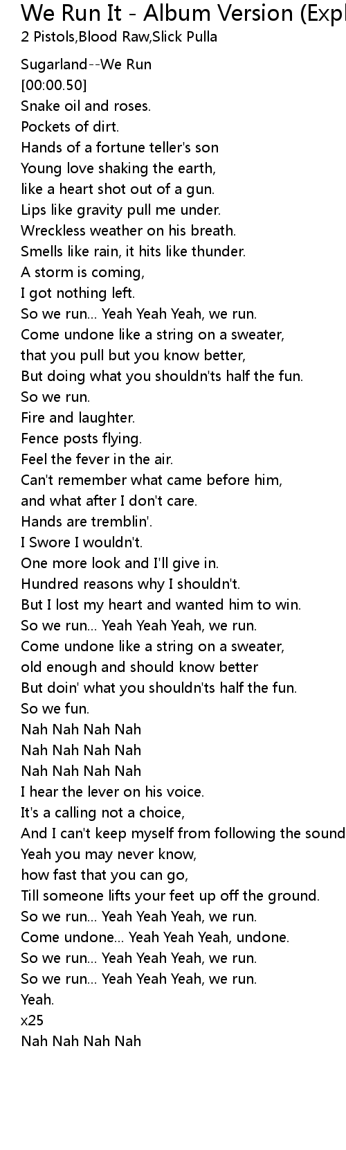 So we run... Yeah Yeah Yeah, we run. |