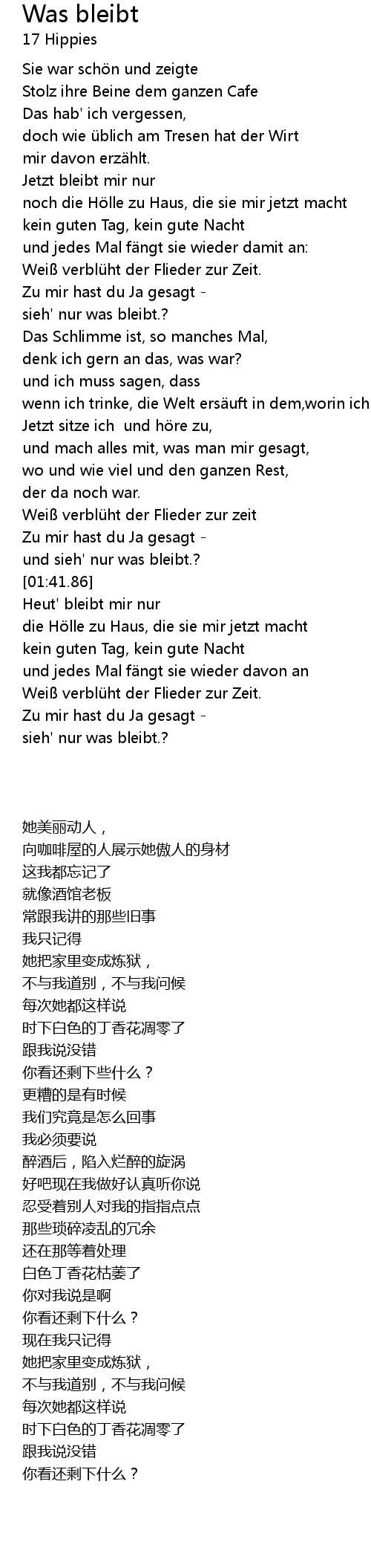 | [01:40.64] | und sieh' nur was bleibt.? |